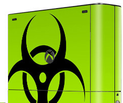 ŠPIČKOVÝ POLEP KONZOLY A OVLÁDAČOV XBOX 360 E V DIZAJNE BIOHAZARD